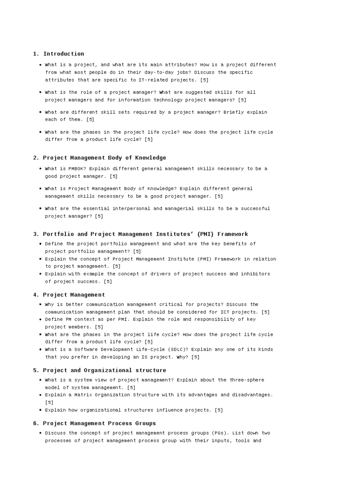 Project management Model Questions - Project Management Model Questions ...