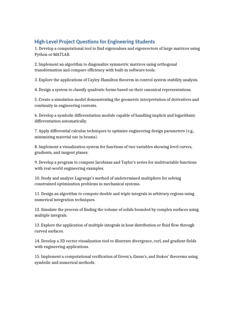 High Level Project Questions Engineering | PDF