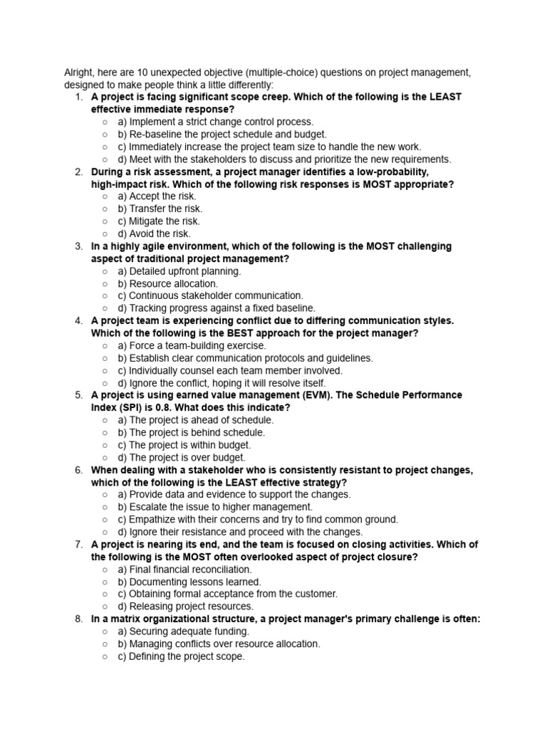 Project Management Questions | PDF | Project Management | Business