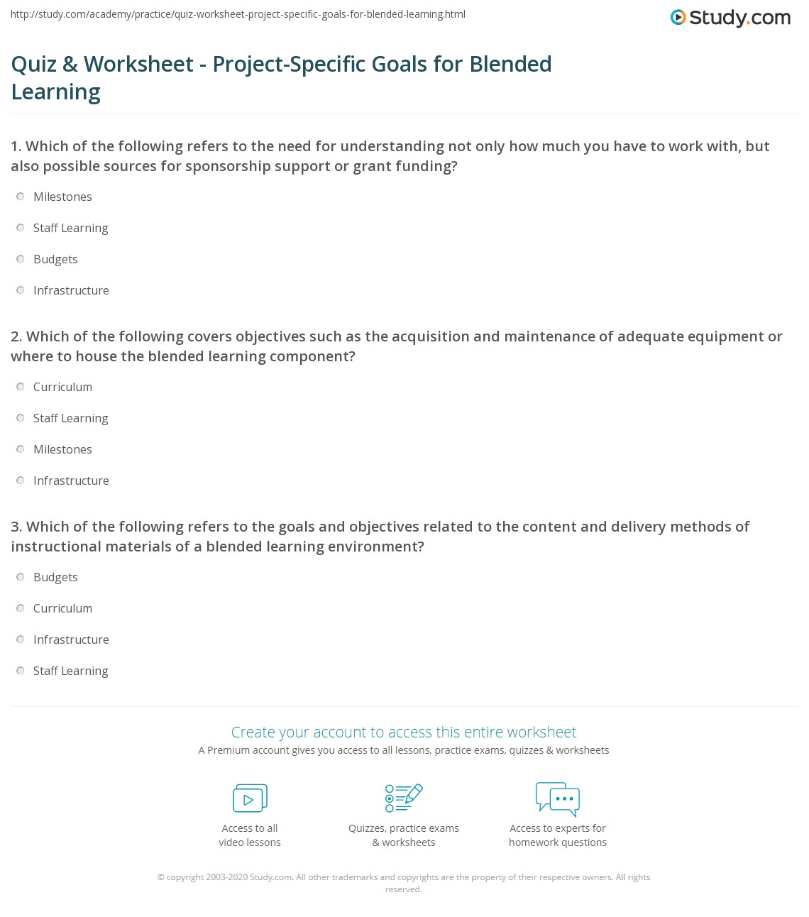 Quiz & Worksheet - Project-Specific Goals for Blended Learning | Study.com