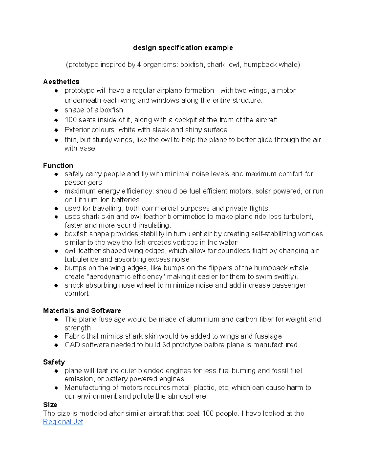 Design Specification for Eco-Friendly Aircraft Prototype - Studocu