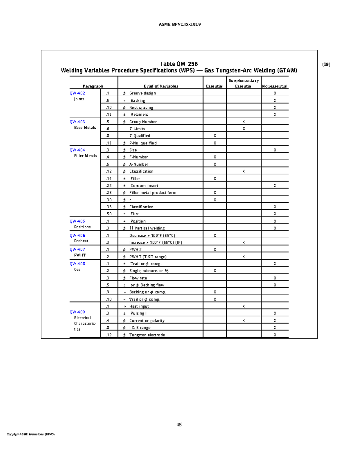 ASME BPVC IX-2019: GTAW Welding Variables Procedure Specifications ...