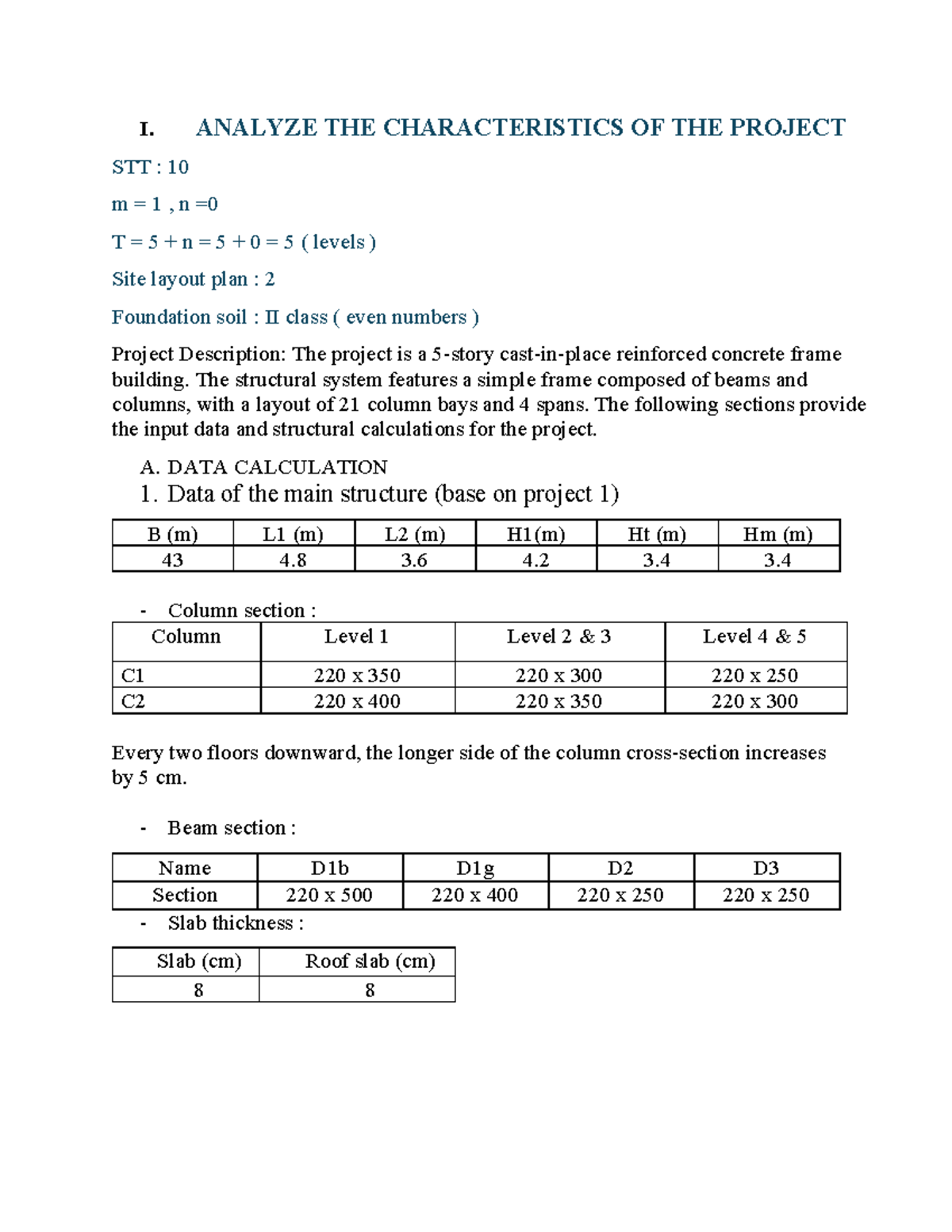 Project I Analysis: Characteristics of a Reinforced Concrete Building ...