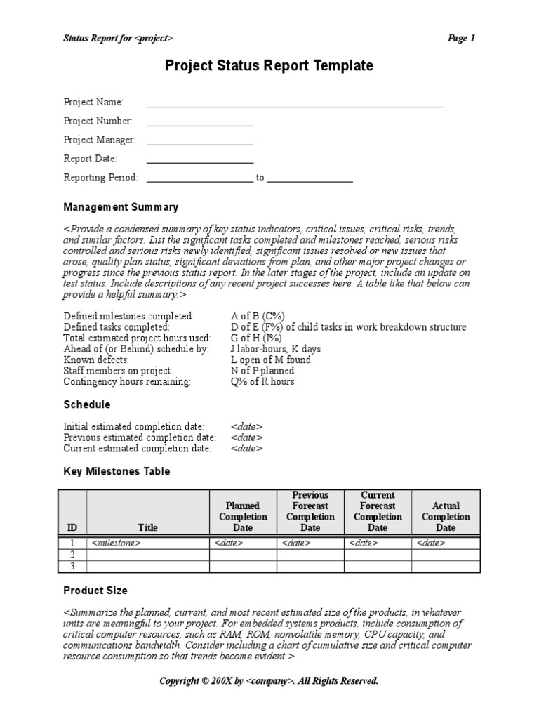One Page Project Status Report Template : A Weekly Status Report - Free ...