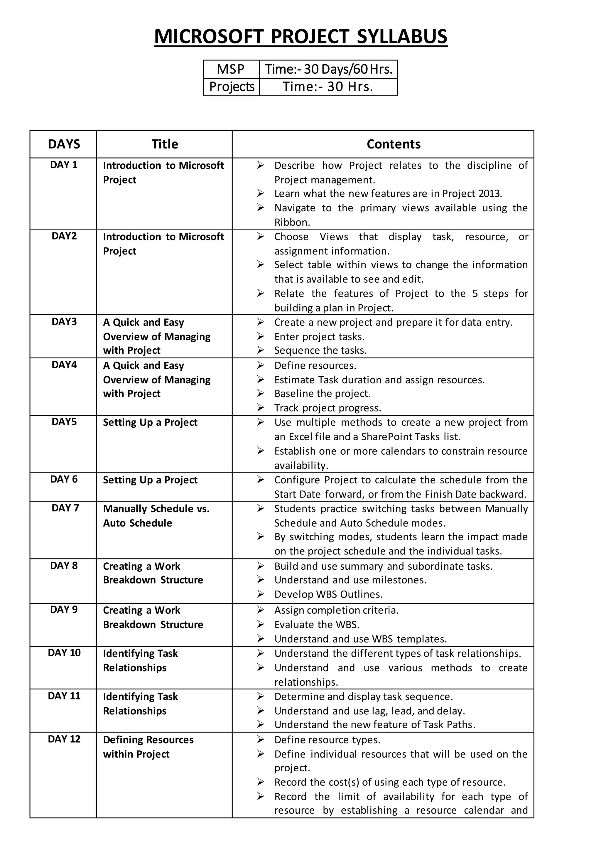 Project Management Syllabus for IA2 - Module Detailed Contents 04 ...