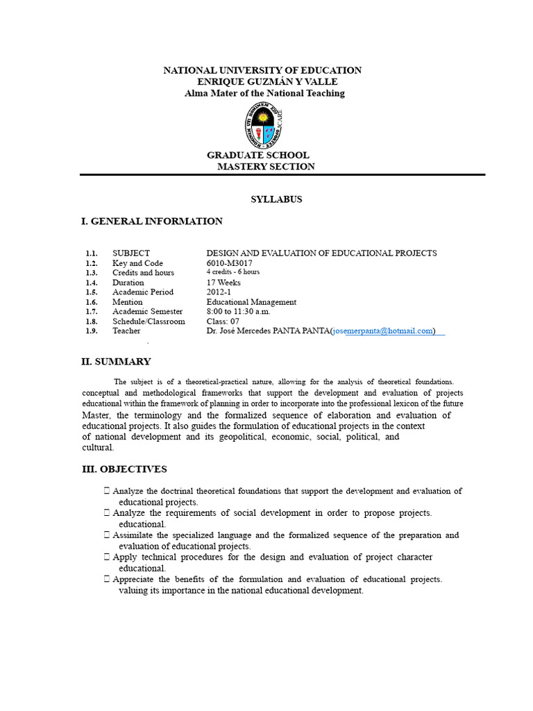 Syllabus Design and Evaluation of Educational Projects | PDF ...