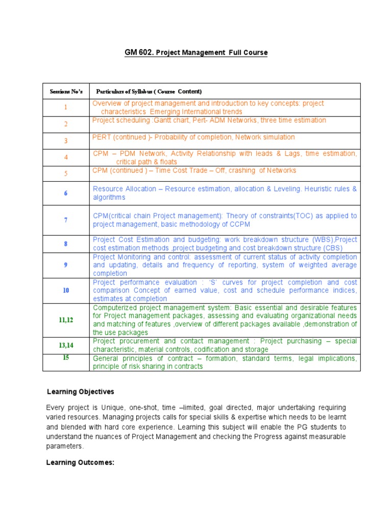 Project Management Syllabus-On-Line Edited PDF | PDF | Project ...