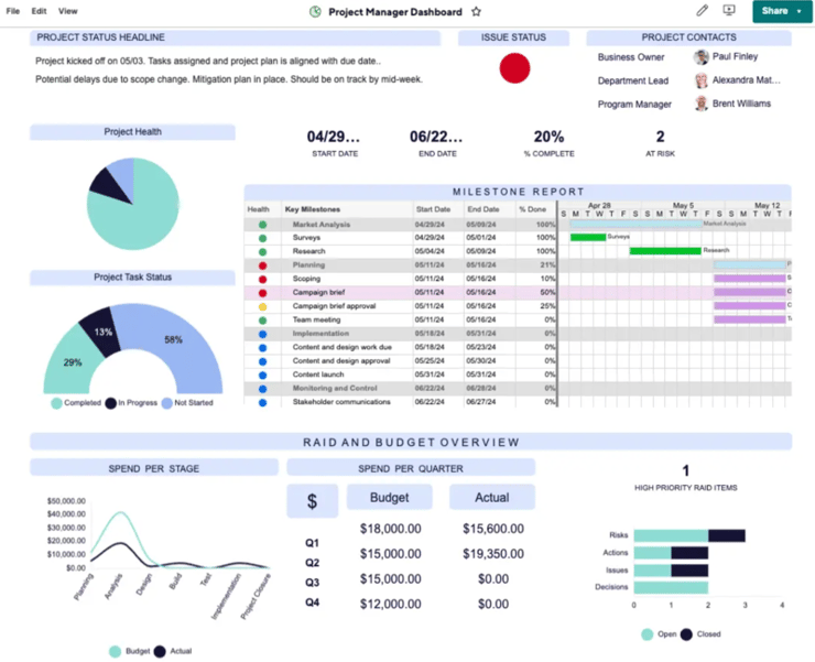 Project Management Dashboard | Team Task Tracker, Timeline Planner ...