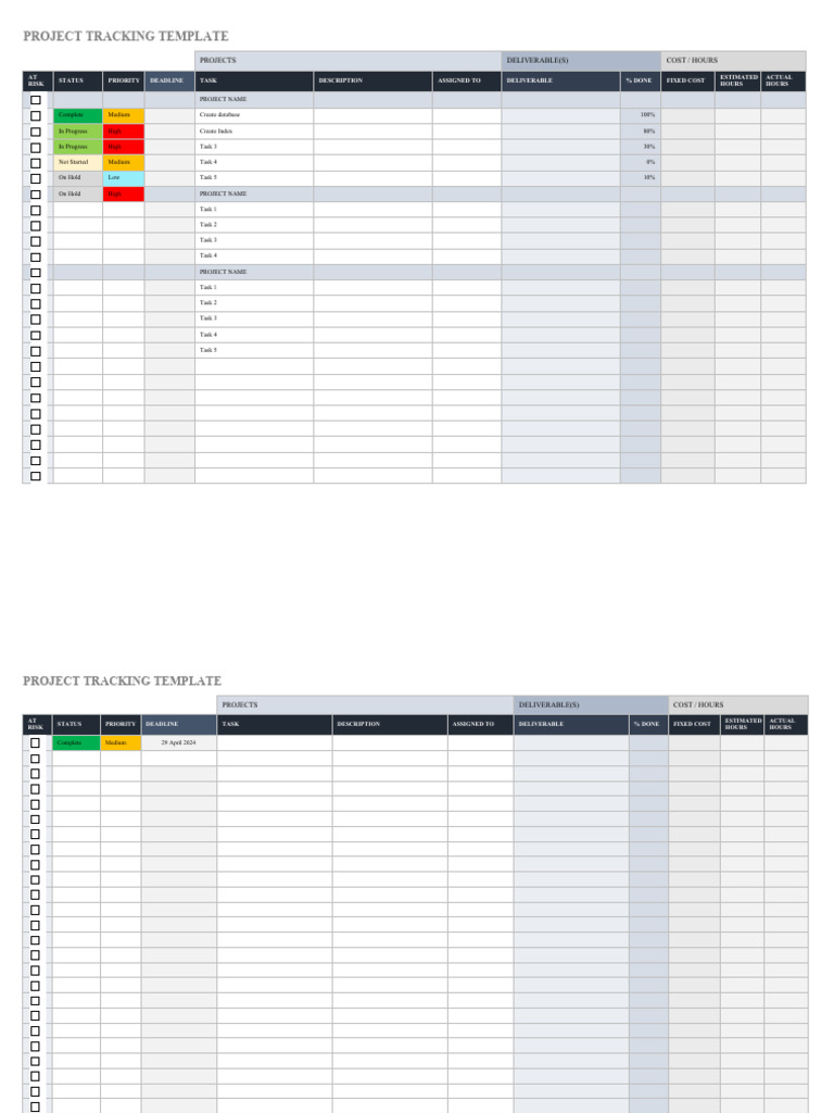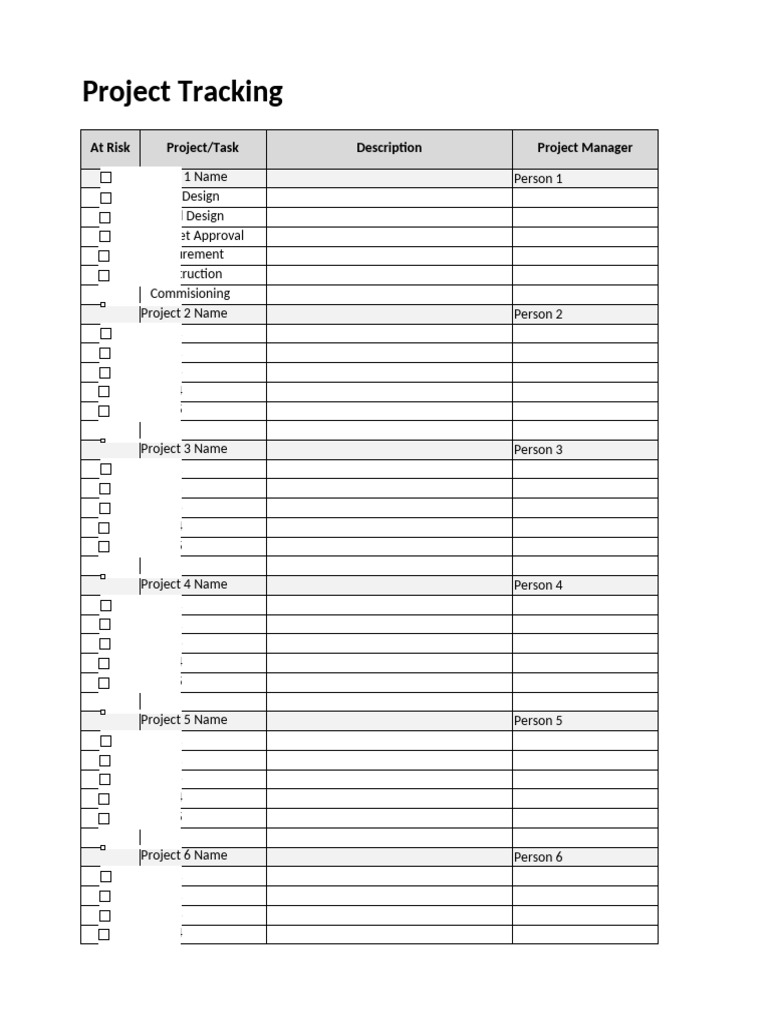 Editable Project Tracking Templates