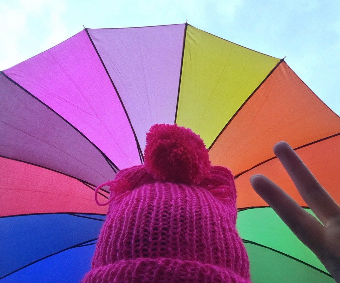Bonnet femme en tricot avec oreilles rose fluo Neon Beanie Pom Girl ...