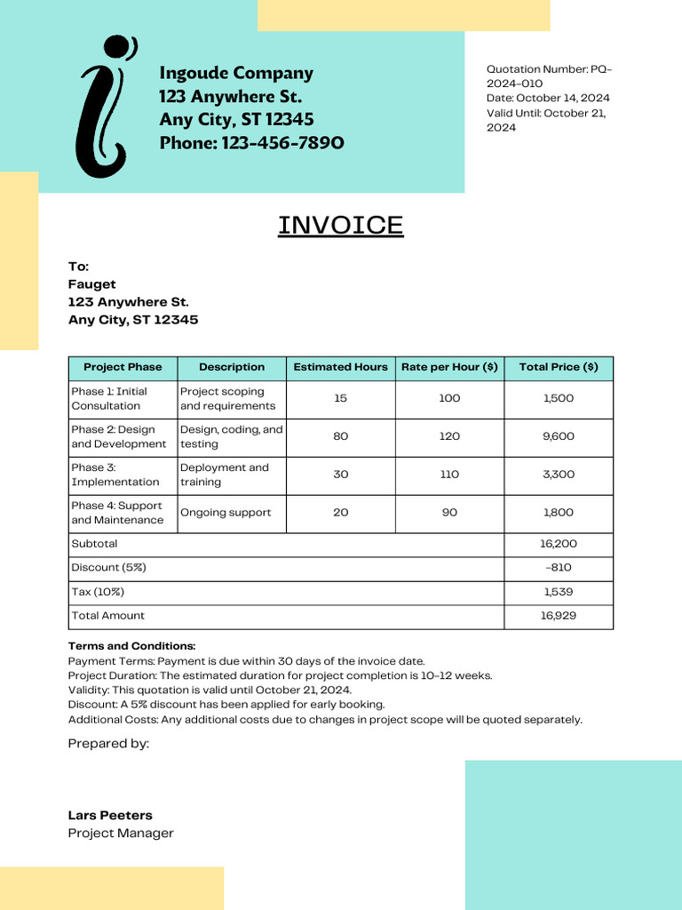Project Invoice Template - Download in Excel, Google Sheets | Template.net