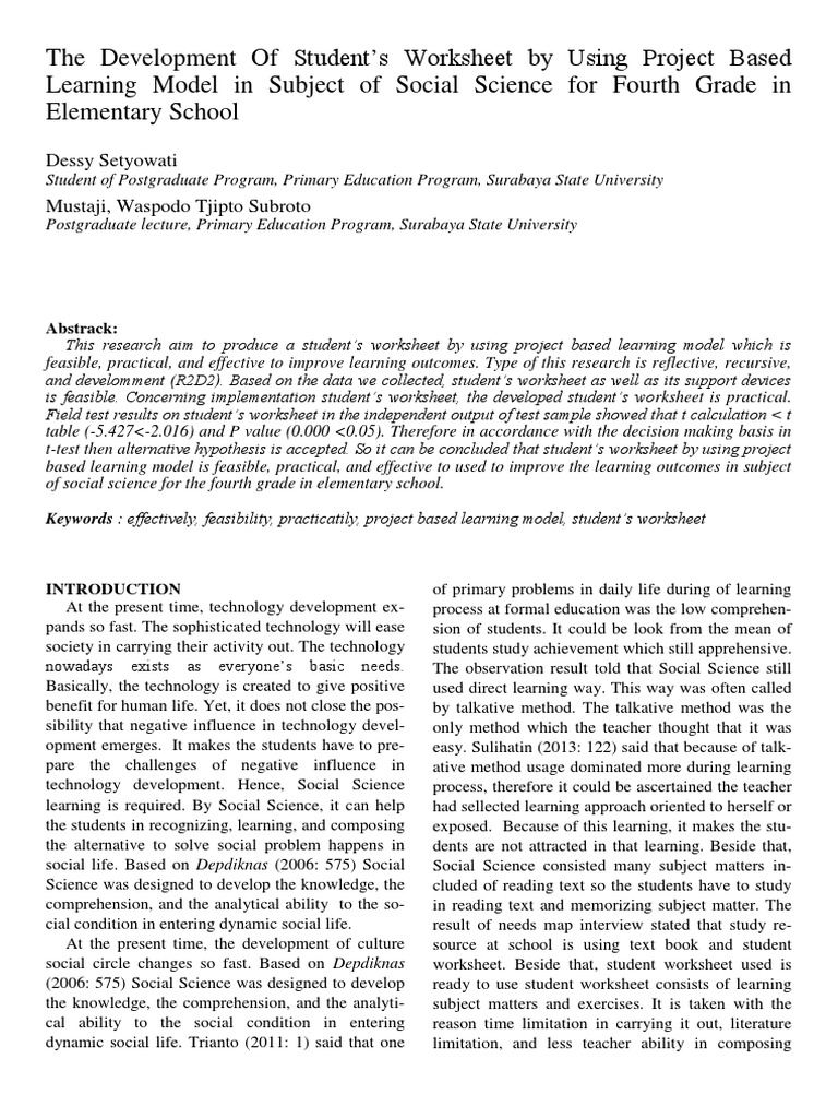 (PDF) Project-based learning model assisted by worksheet: It’s effect ...