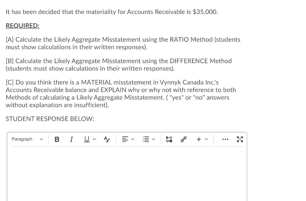 SOLVED: Requirement Estimale the total amouni misstatement in the ...