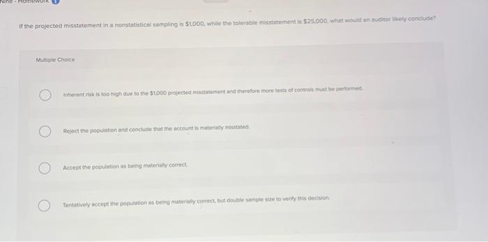 Solved Nino Homework If the projected misstatement in a | Chegg.com