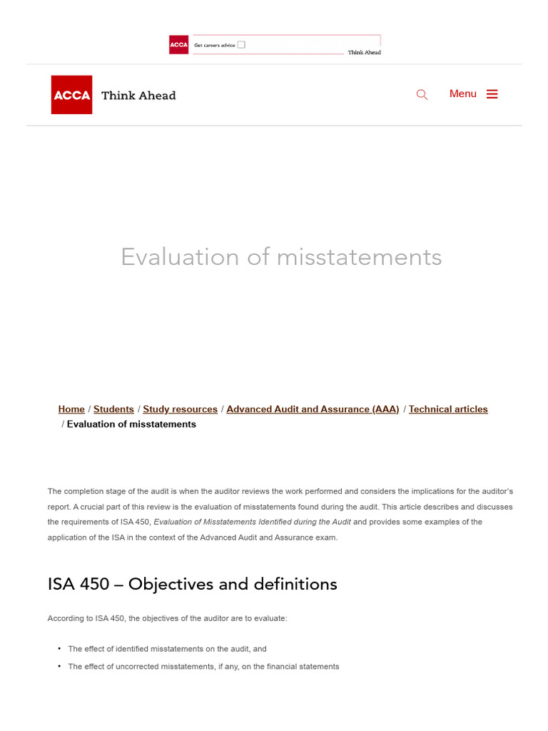 Evaluation of Misstatements | PDF | Audit | Financial Audit