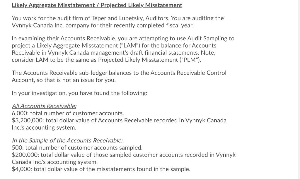 Solved Likely Aggregate Misstatement / Projected Likely | Chegg.com