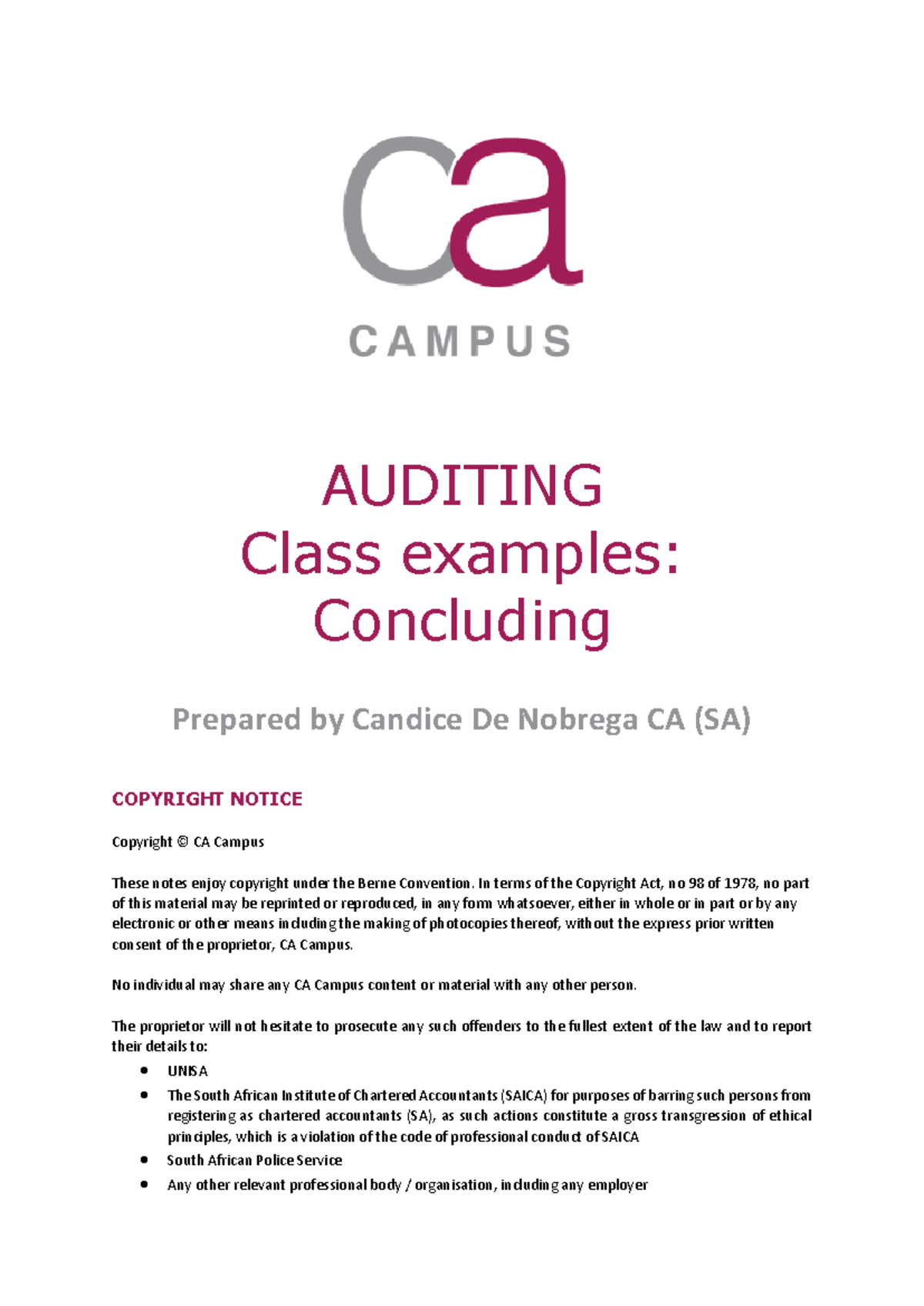 AUDITING Class Example: Misstatements & Audit Opinions Solution - Studocu