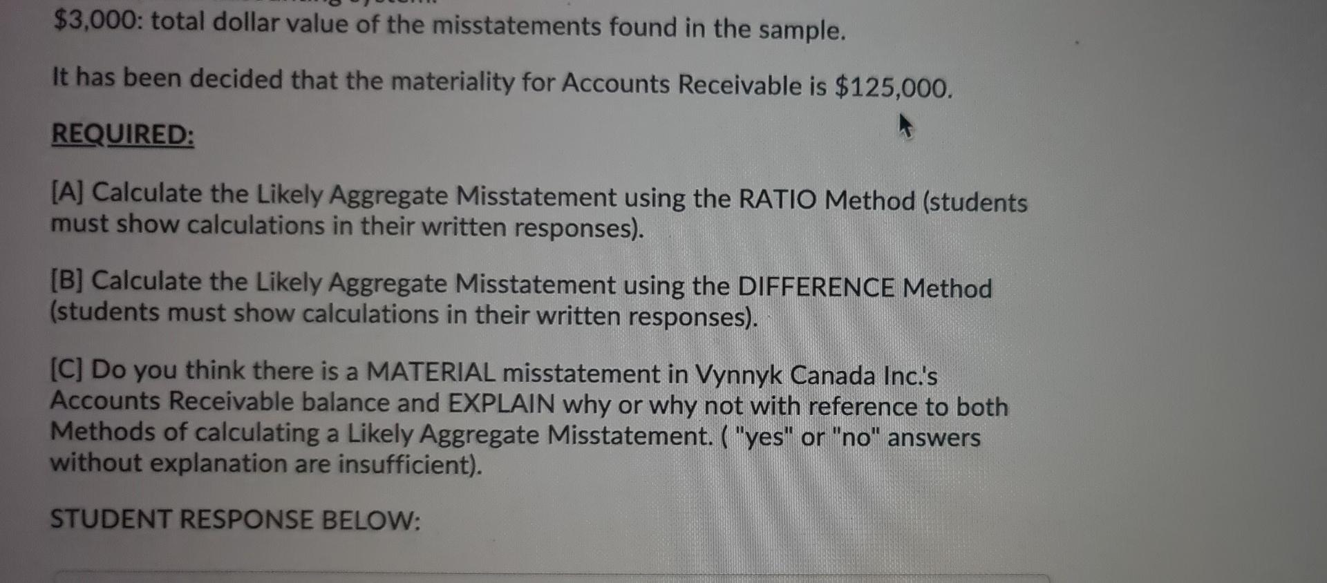 SOLVED: Requirement Estimale the total amouni misstatement in the ...
