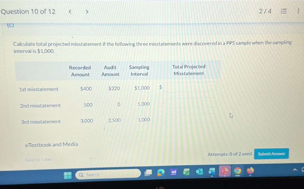 Solved Enter the amount of the projected misstatement total | Chegg.com