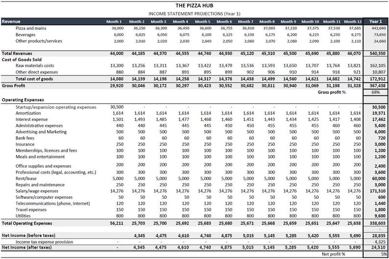 Pizza Shop Excel Financial Template: Financial Projections Calculation ...