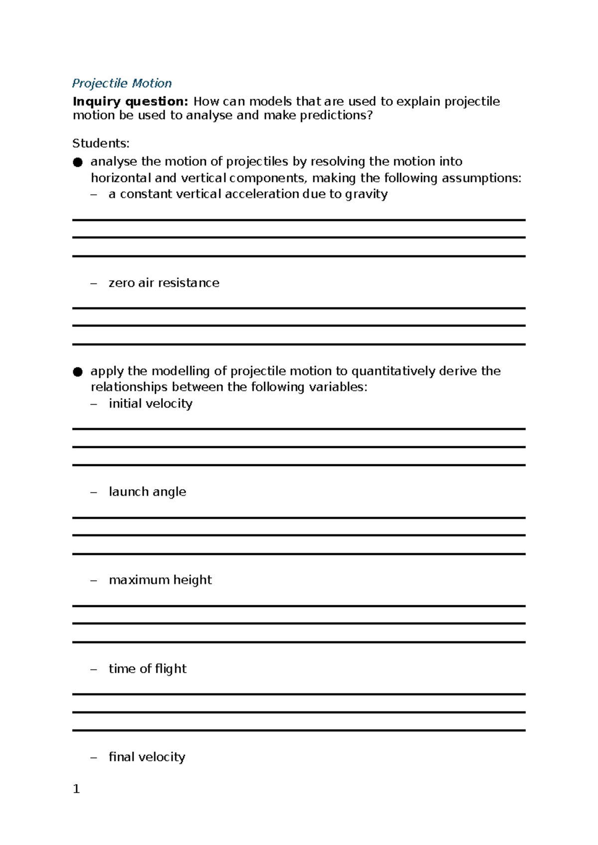 SOLUTION: Hsc module 5 physics projectile motion depth study - Studypool