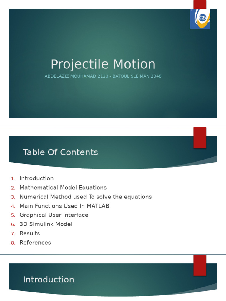 Projectile Motion Project - PROJECTILE MOTION PROJECT Contents ...