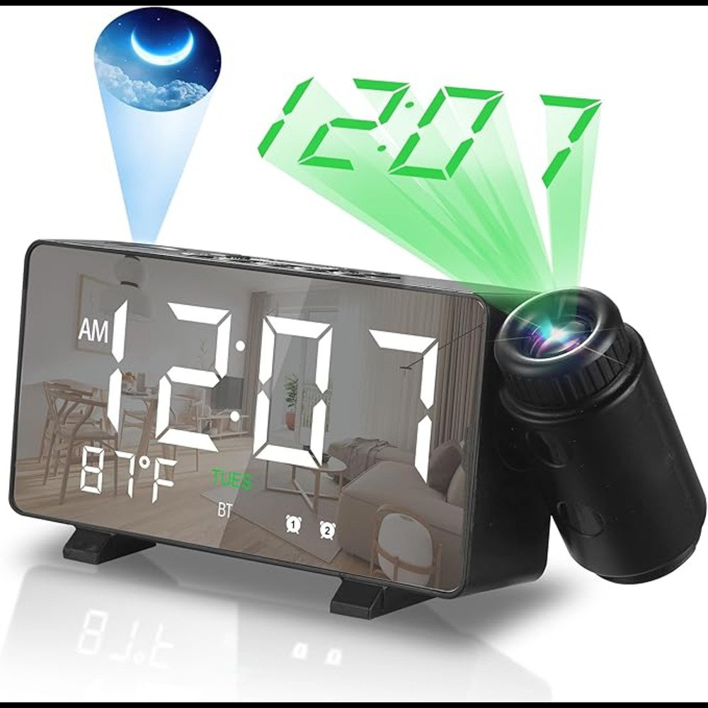 Aytop Projection Alarm Clock, Digital Clock with 180° Projector Alarm ...