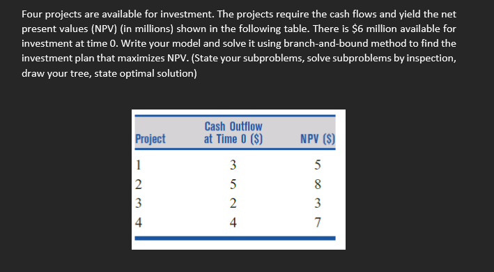 Solved Four projects are available for investment. The | Chegg.com