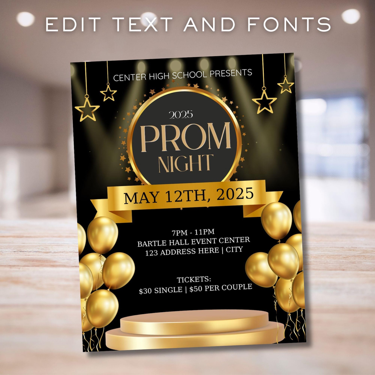 Editable A Night Under The Stars Prom Flyer and Ticket Set, School Prom ...