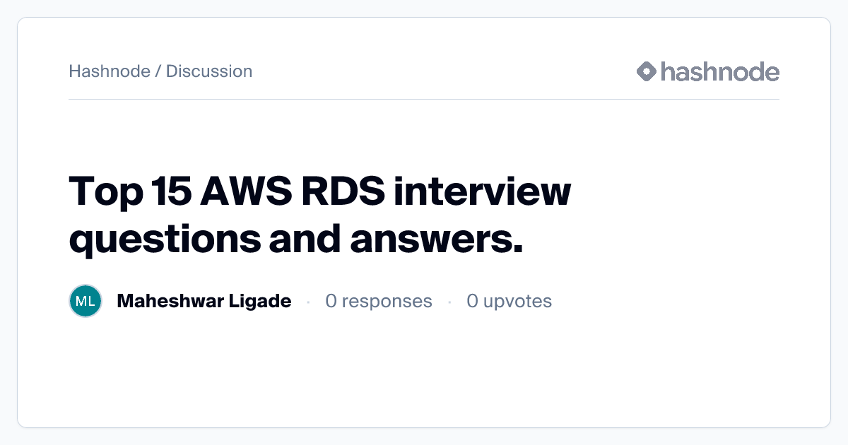 Discussion on "Top 15 AWS RDS interview questions and answers." | Hashnode