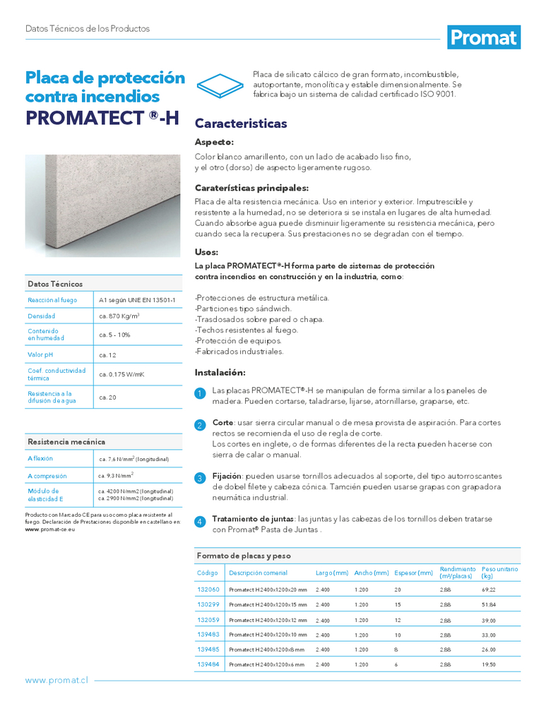 PLACAS DE FIBROSILICATO. HPROMAT PLACA PROMATECT H - Distribucions PLB