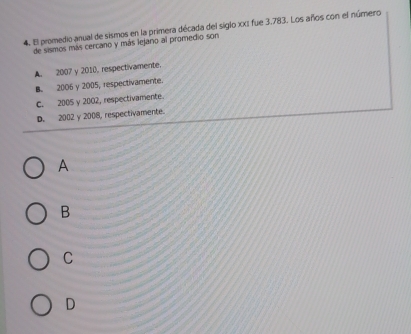 Resuelto:El promedio anual de sismos en la primera década del siglo xXI ...