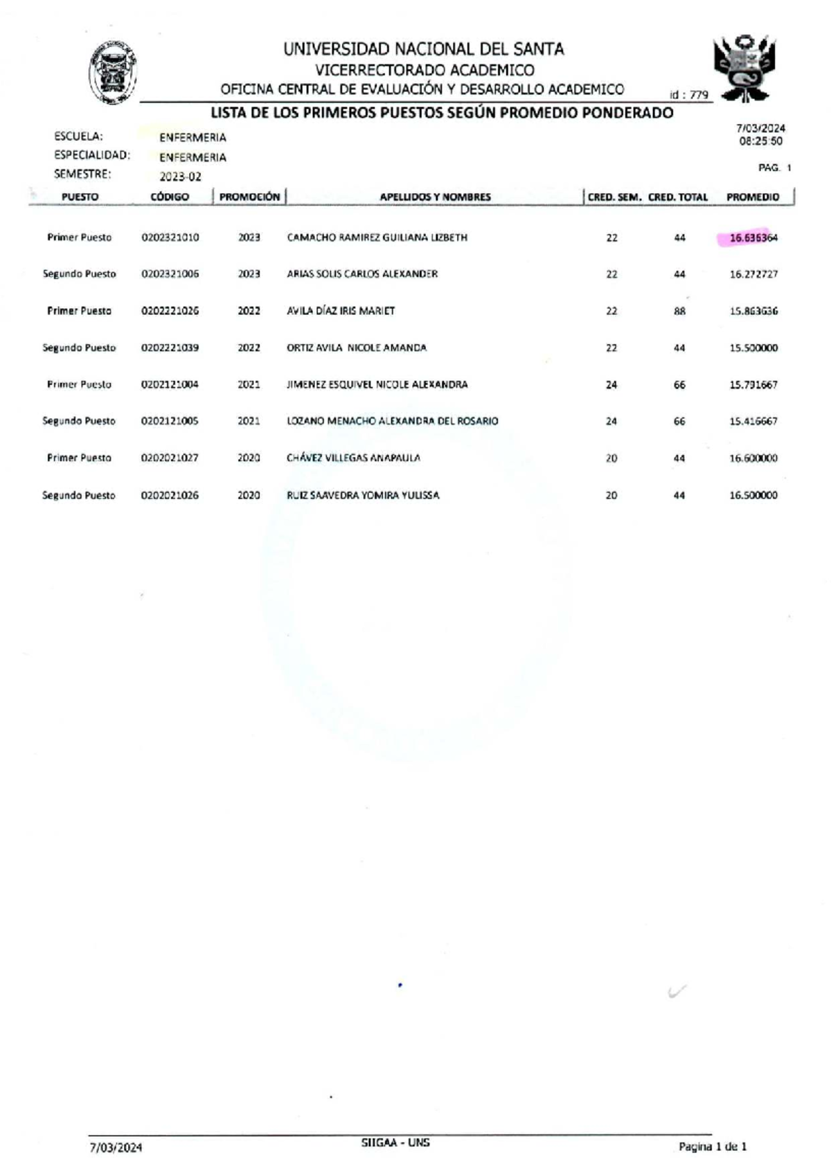 Lista de Primeros Puestos 2023 - Promedio Ponderado por Escuela - Studocu