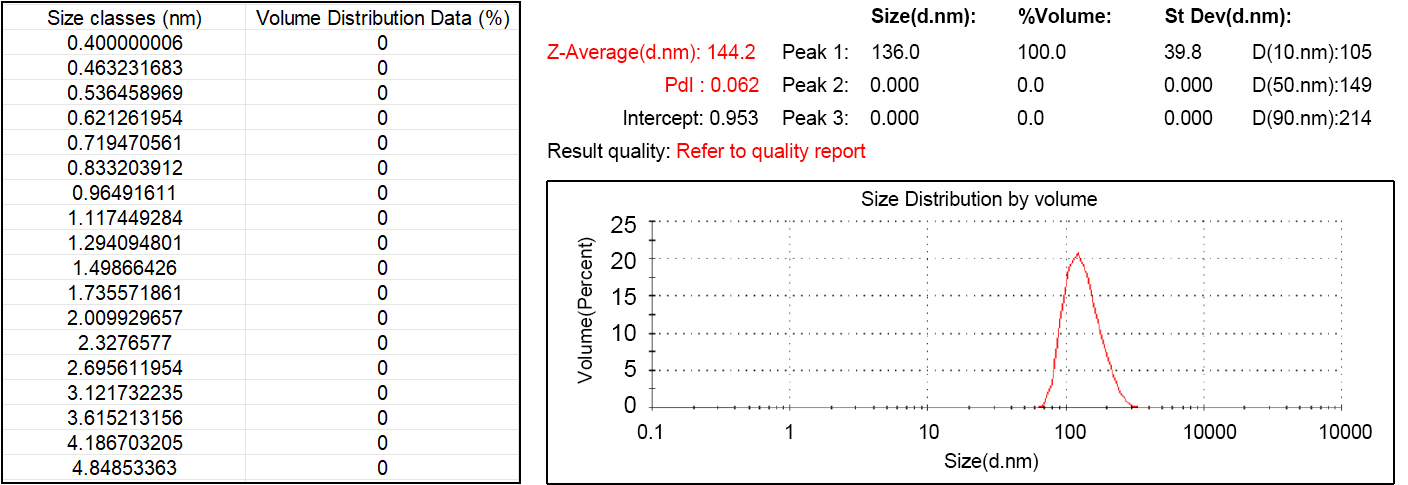 Prometheus Panta DLS size analysis of Venetin-1 microparticles. The ...
