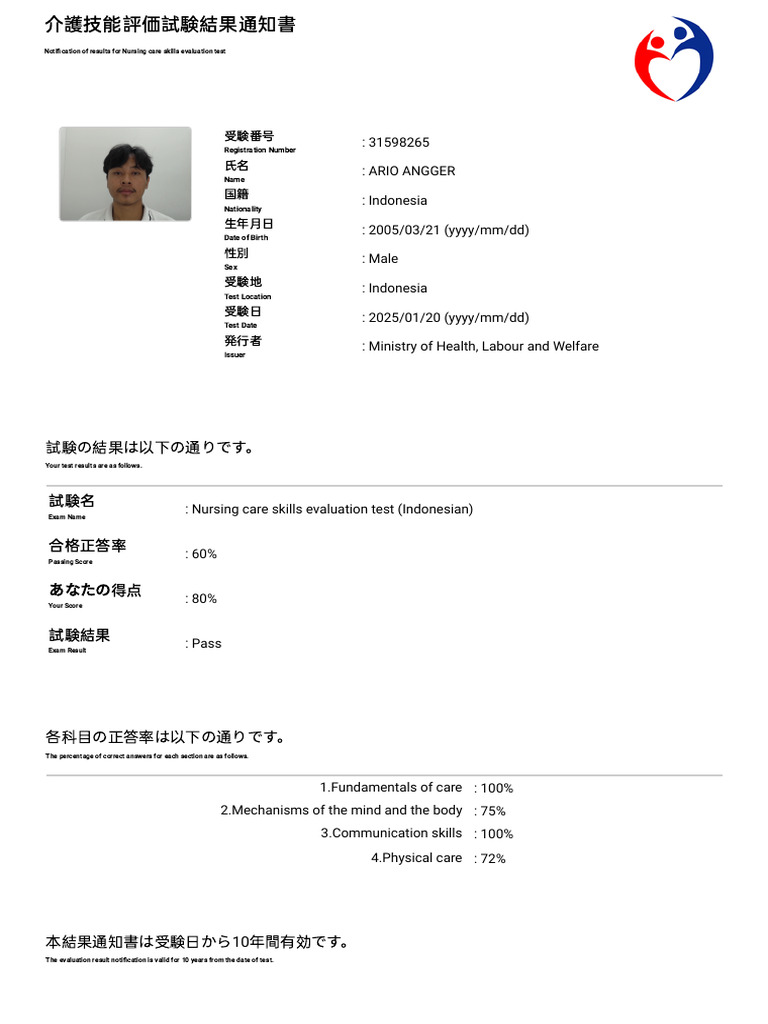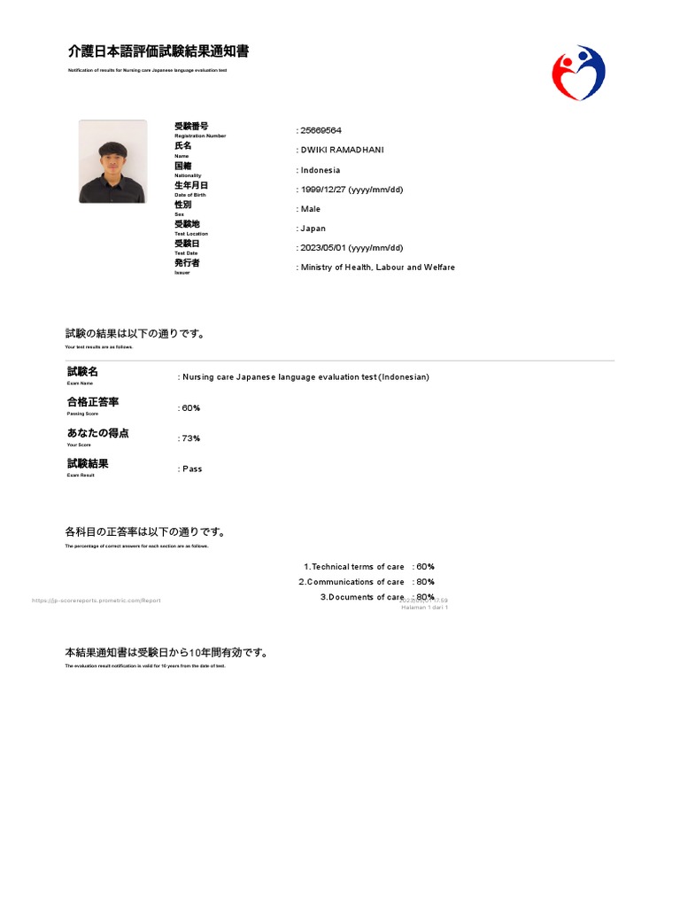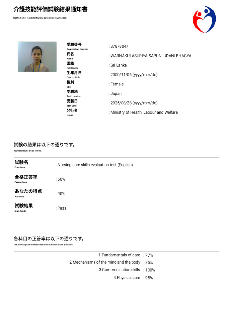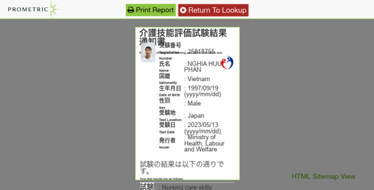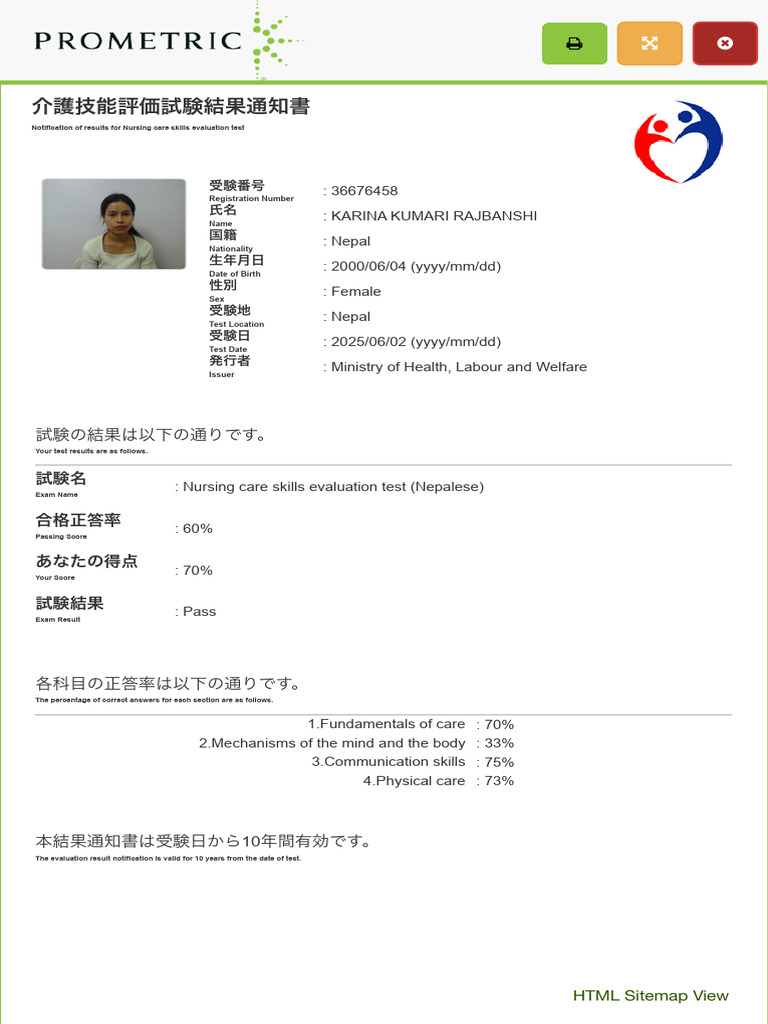 Prometric - Nursing Care Japanese Language Evaluation Test Score Report ...