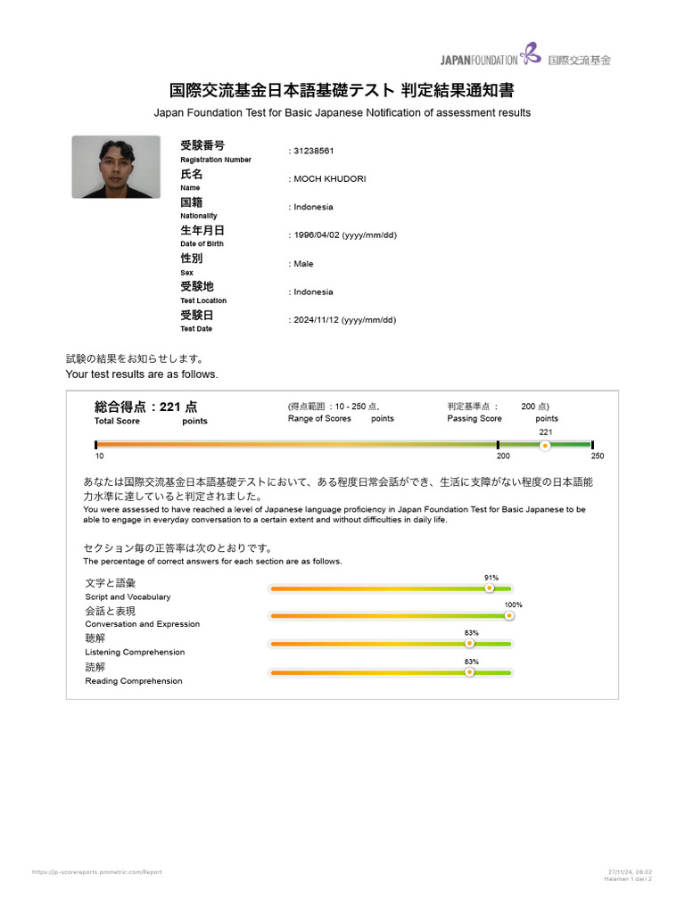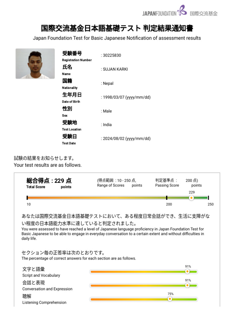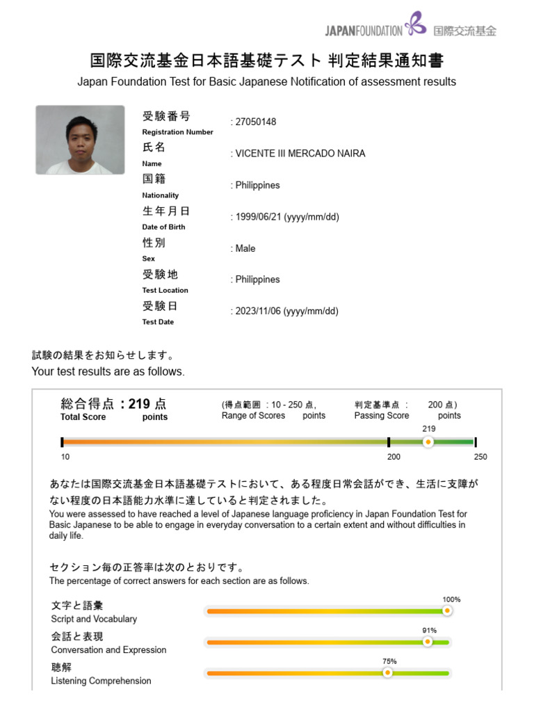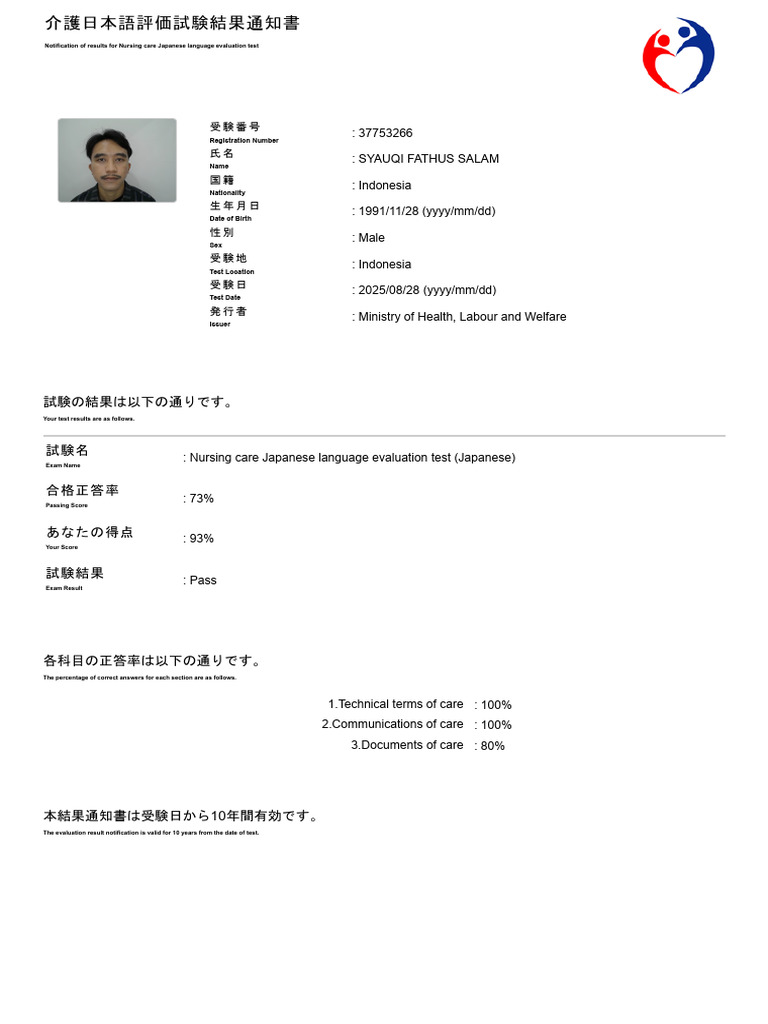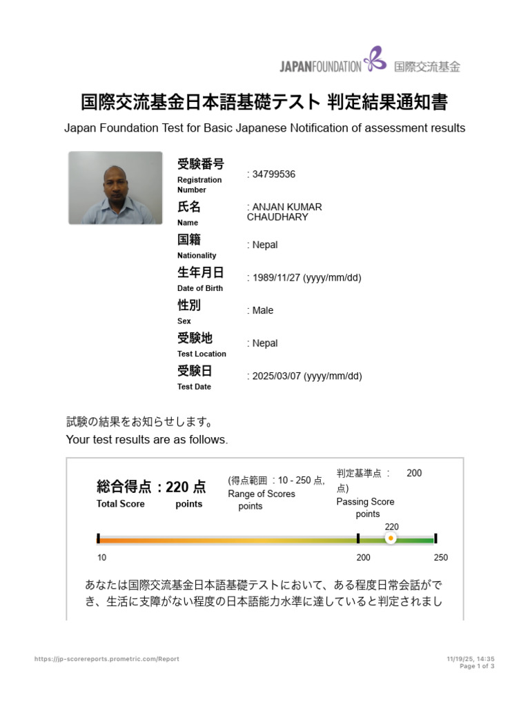 Prometric - Nursing Care Japanese Language Evaluation Test Score Report ...