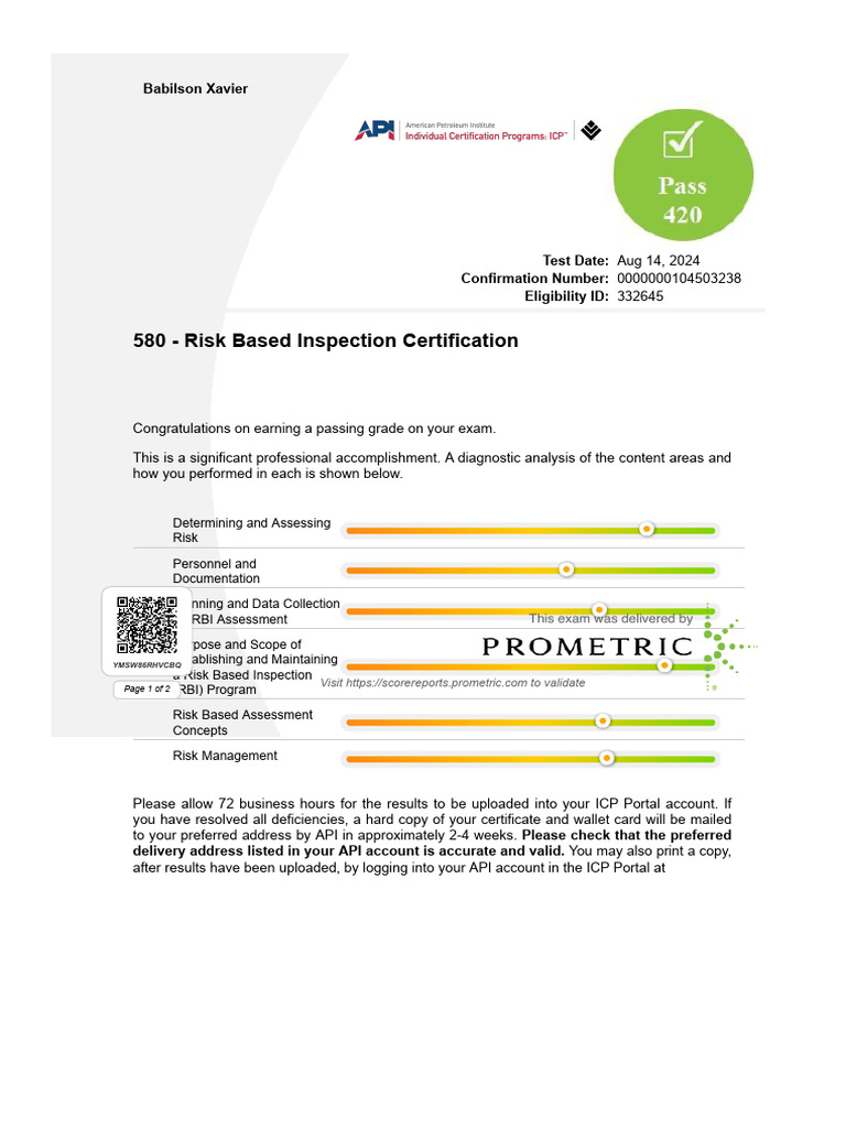 Prometric - Report View - Babilson Xavier API-580 | PDF