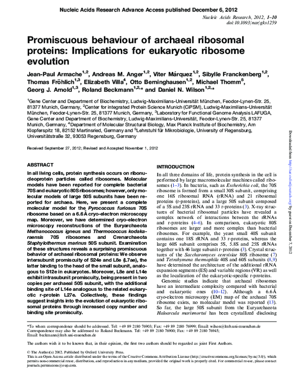 (PDF) Promiscuous behaviour of archaeal ribosomal proteins ...