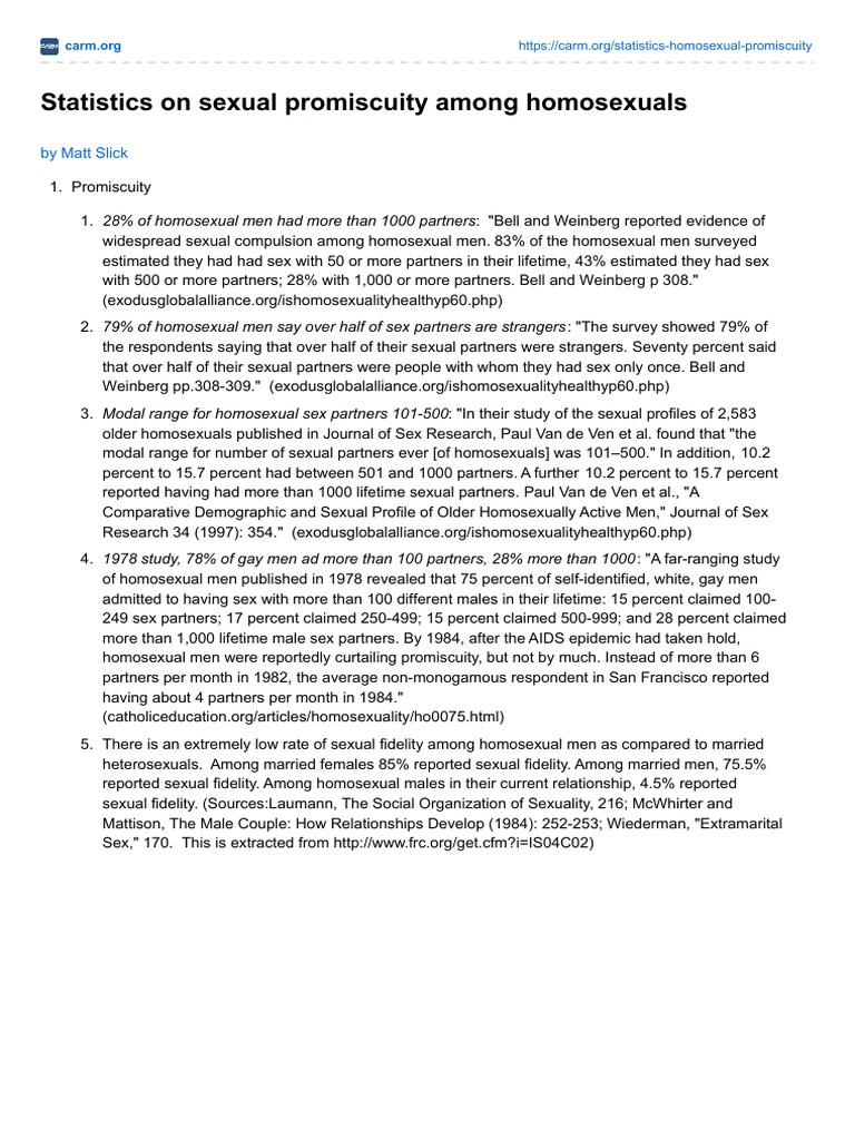 Homosexual Promiscuity Statistics | PDF | Homosexuality | Sexual ...