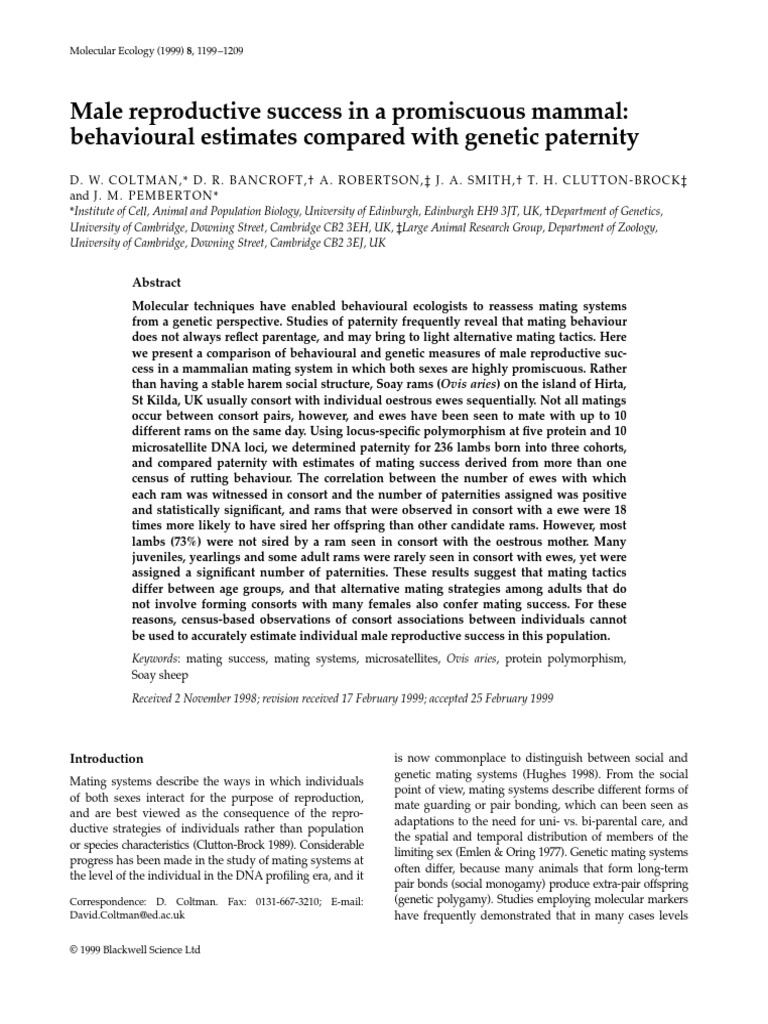 Coltman, Male Reproductive Succes in Promiscuous Mammal | PDF | Sheep ...