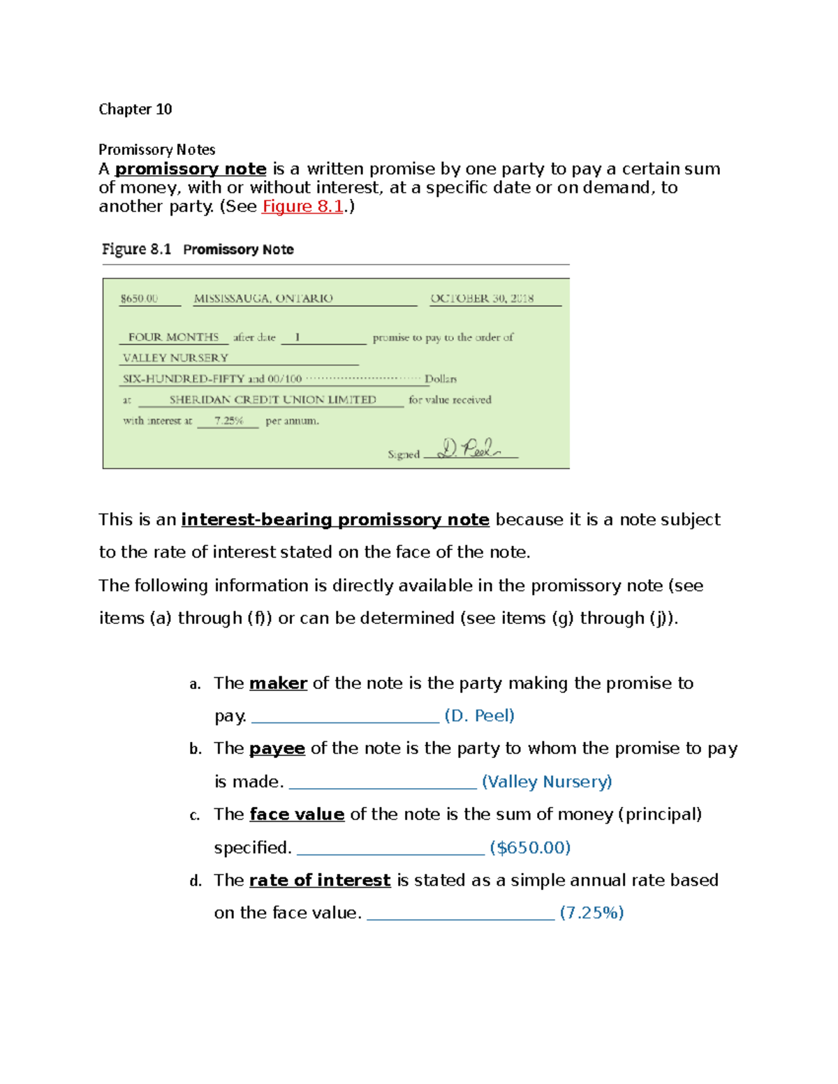 Chapter 10 - Lecture notes 10 - Chapter 10 Promissory Notes A ...