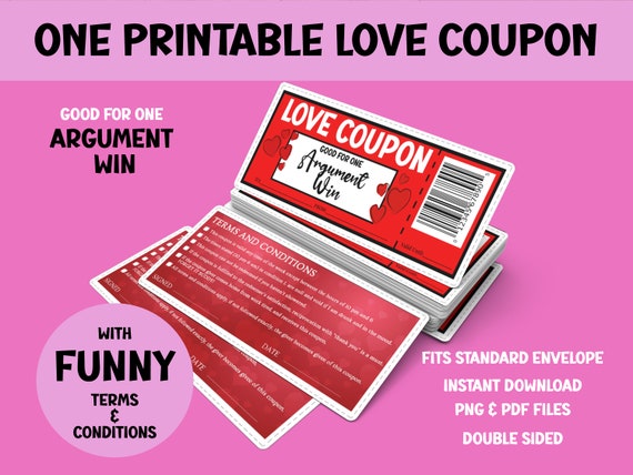 One Printable Love Coupon Argument Win Voucher Gift - Etsy