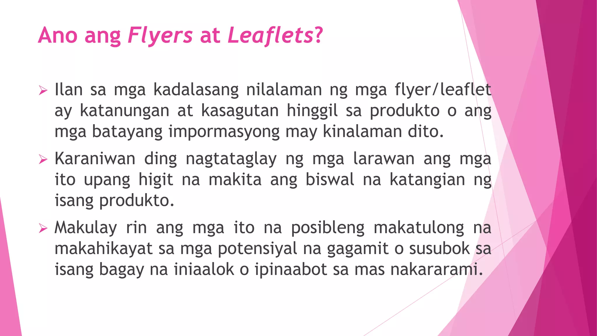 Flyers, Leaflets, at Promotional Materials, Filipino sa Piling Larang ...