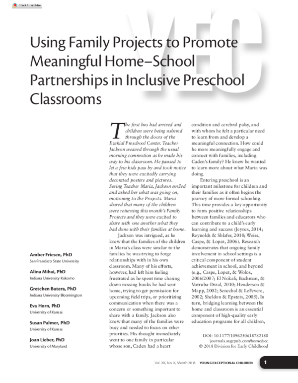 (PDF) Using Family Projects to Promote Meaningful Home–School ...