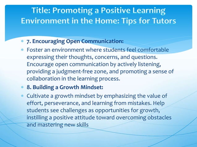 Promoting a Positive Learning Environment in the Home Tips for Tutors.pptx