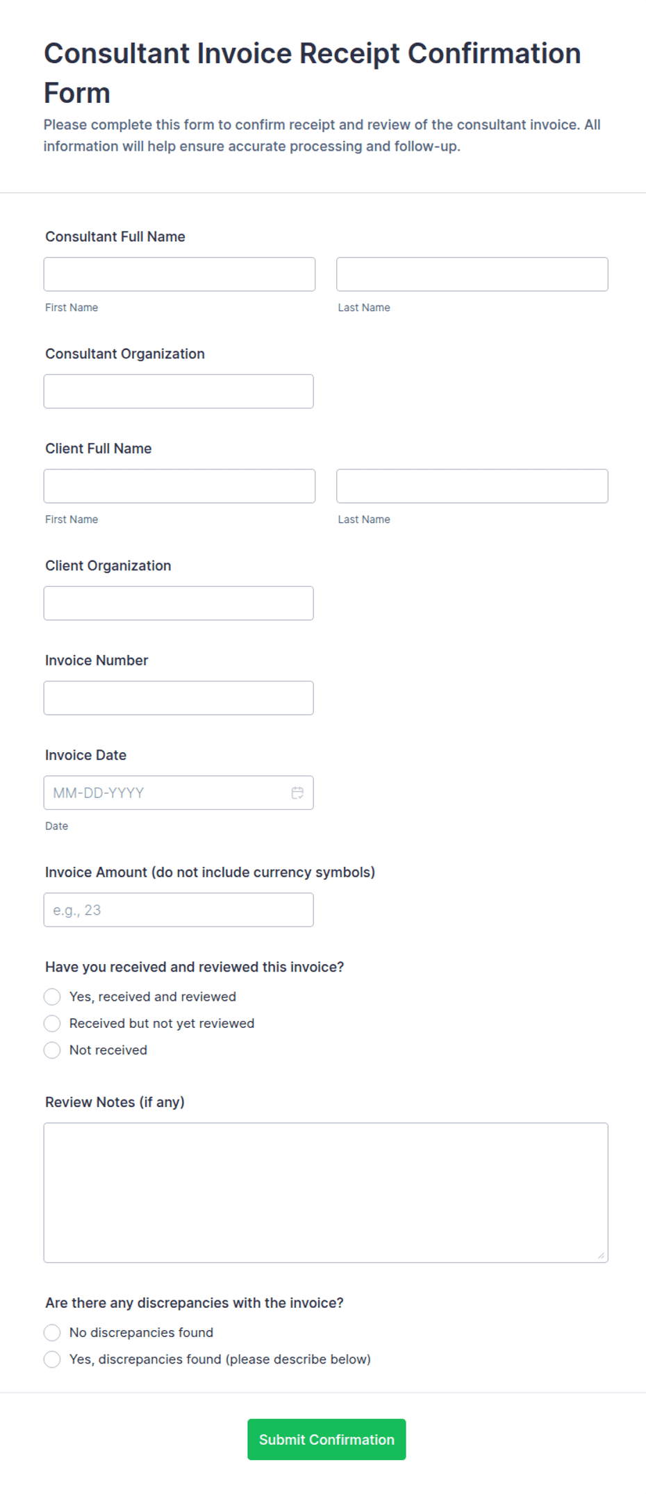 Consultant Invoice Receipt Confirmation Form Template | Jotform