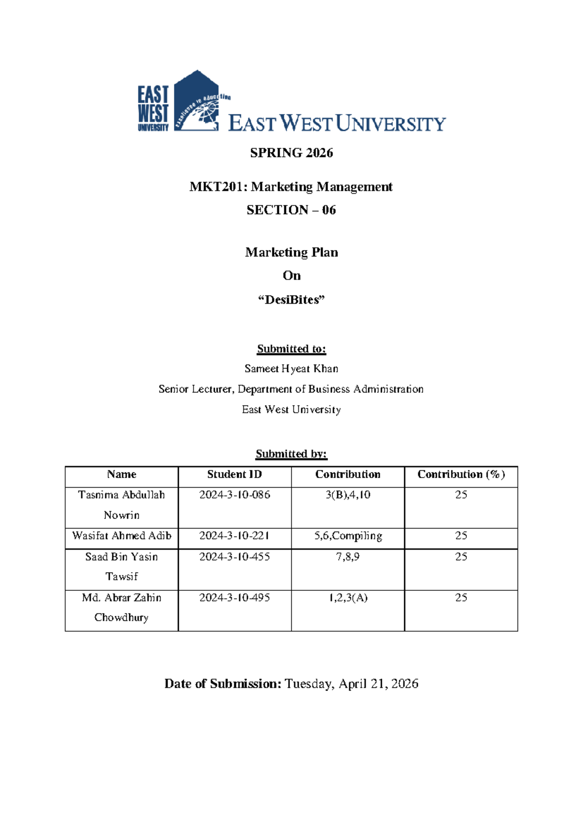 MKT201: Marketing Plan for DesiBites - A Healthy Snack Innovation - Studocu