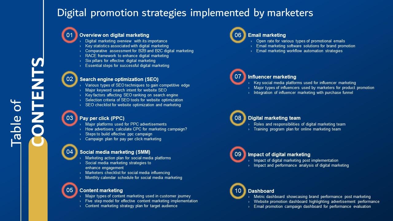 Table Of Contents Digital Promotion To Communicate Marketing Messages Guide