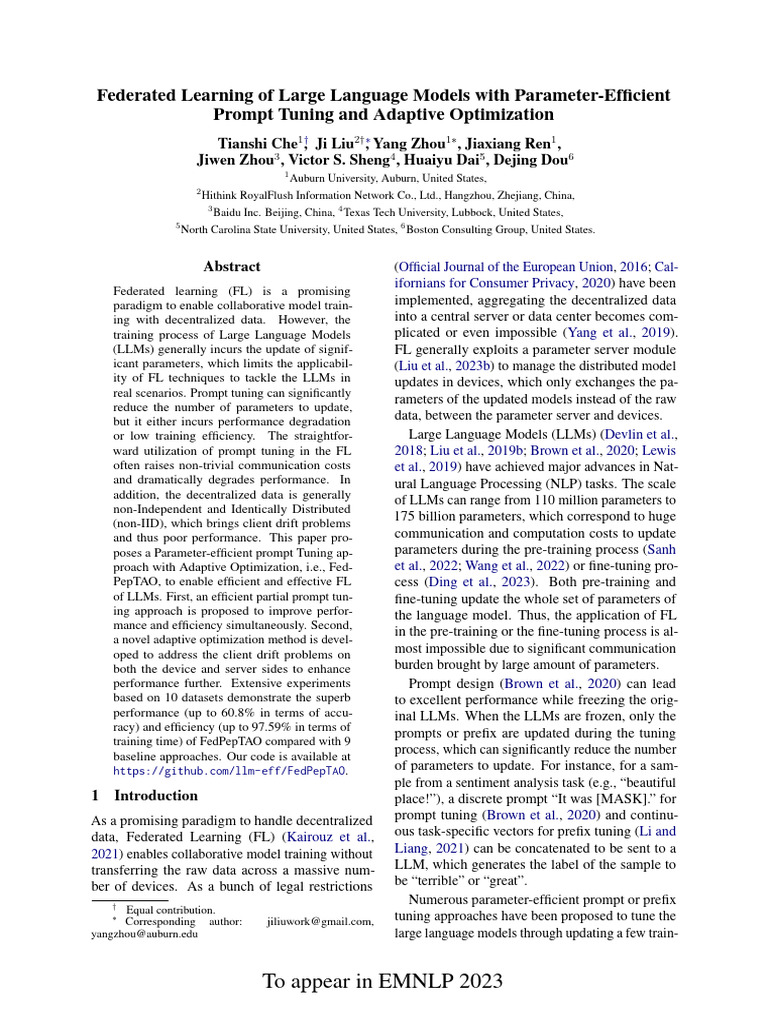 FLLM With Promt Tuning and Adaptive Optimization 2023 Arxiv | PDF