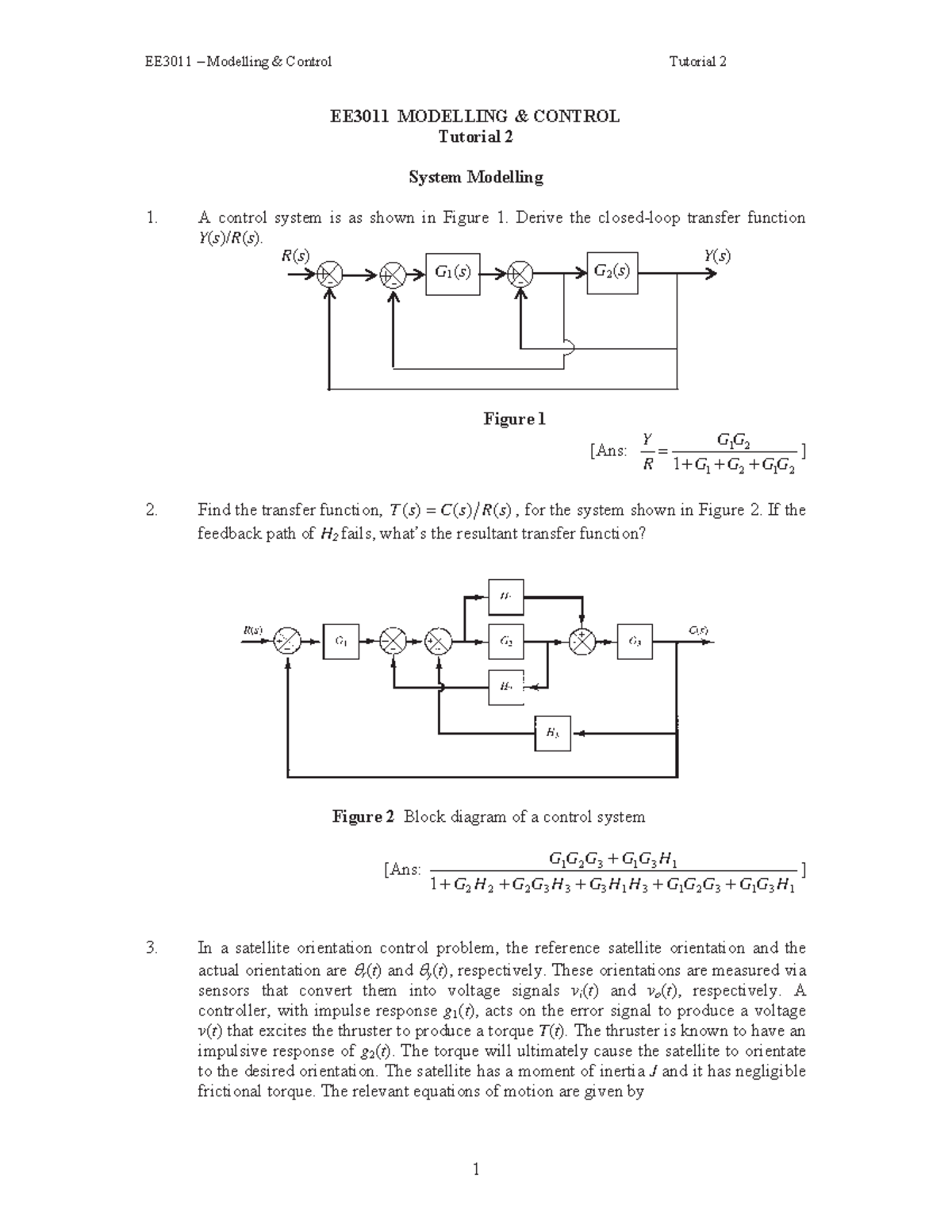 EE3011 Tutorial 2 Notes AY20/21: Control Systems Overview - Studocu